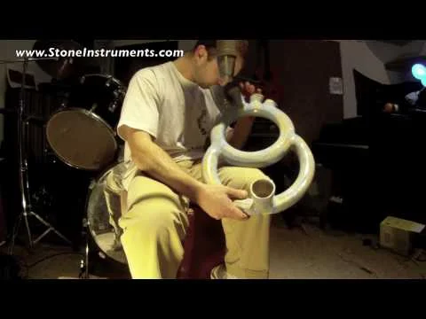 Circle Digeridoo - Ceramic, Thrown on Potter's Wheel, Hand Built, Glazed with Blue and Yellow Glass